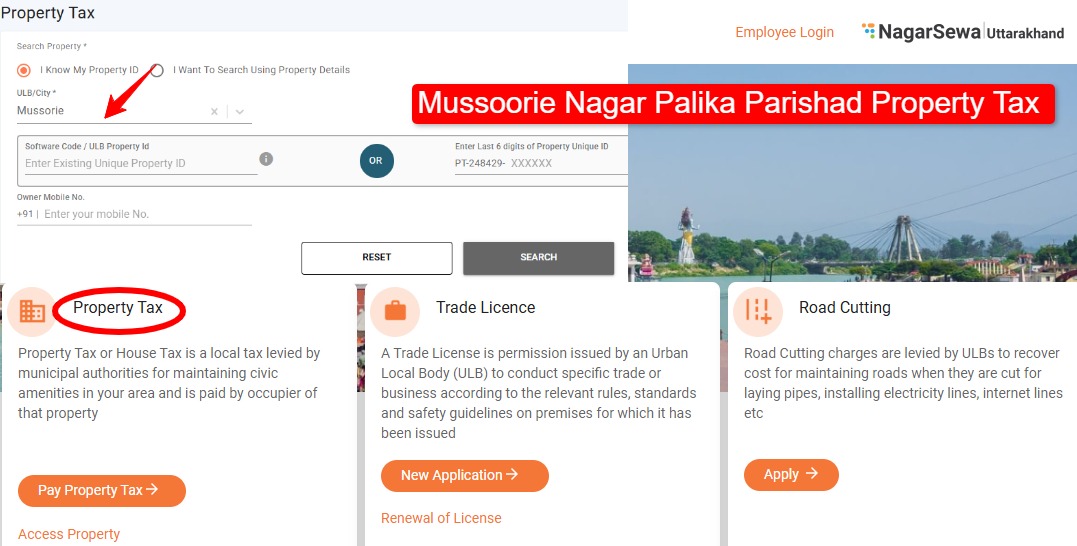 Visit the official property tax portal of Mussoorie Nagar Palika Parishad.