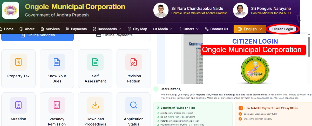 How to Pay Ongole Municipal Corporation Property Tax Online